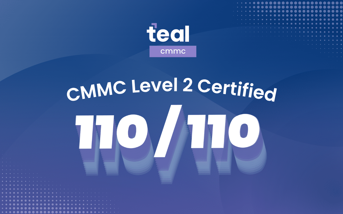WASHINGTON/MINNEAPOLIS, April 21, 2026 – Teal, an independently owned CMMC managed IT services company, has achieved Cybersecurity Maturity Model Certification Level 2 following an independent assessment by an accredited CMMC Third-Party Assessment Organization (C3PAO). The company received a perfect score of 110 out of 110, confirming full implementation of every security control in NIST SP 800-171.